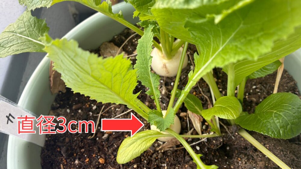 うちは間引きが行き届いておらず、一部は超小カブサイズになりました。