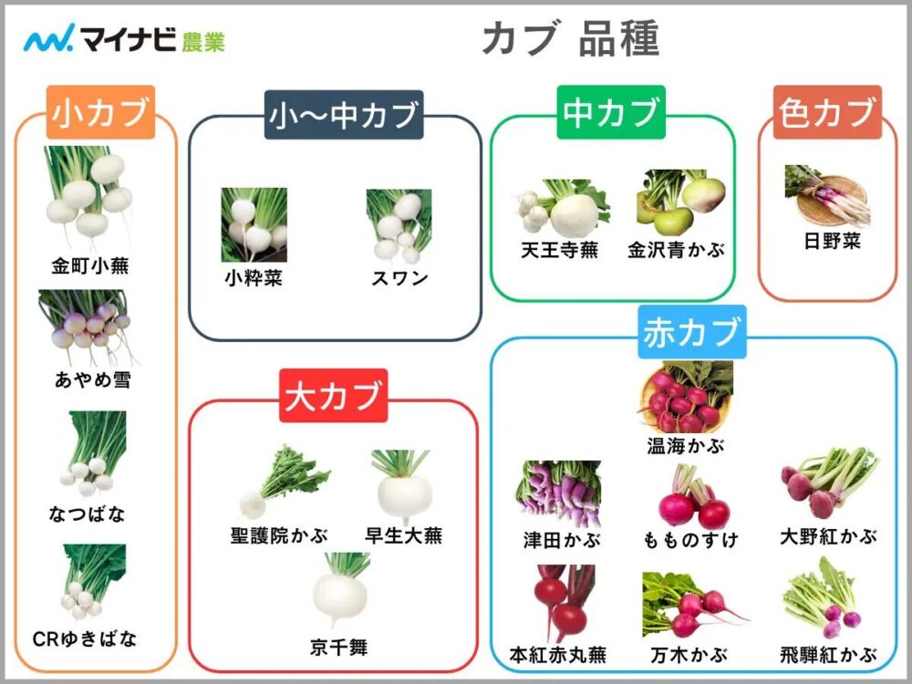 カブもまたポピュラーな野菜であるため、世に出回っている品種は無数にあります。